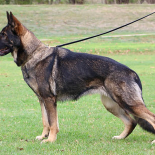 Baika is like a Ferrari when it comes to work, and is easily one of my favorite dogs! She enjoys all phases of IGP and wants nothing more than to work with her handler. She is exuberant in her obedience and pushes to heel, whether you have a toy for her or not. Baika has one of the best motors for obedience I've ever seen and is an absolute blast to train. Her prey and toy drive are VERY high, her favorite reward is the ball but she'll happily work for food and praise as well. Absolutely zero handler aggression and no sensitivity to a fair correction. In protection, she is truly balanced between prey and defense, she's able to switch easily between drives. She is fast and hits the helper hard. This girl loves to fight and stop the helper. She has deep, rhythmic barking and extremely hard, full grips. She is possessive but keeps a clear head and remains easy to control.